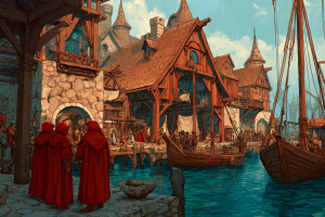 As an Oligarchic Theocracy, it is governed by powerful merchant families and the Church of the Mother – a republic guided by sacred contracts, economic ritual, and fierce political competition. Its streets brim with opportunity, its temples double as counting houses, and its marketplaces attract fortune-seekers from every corner of the seas.