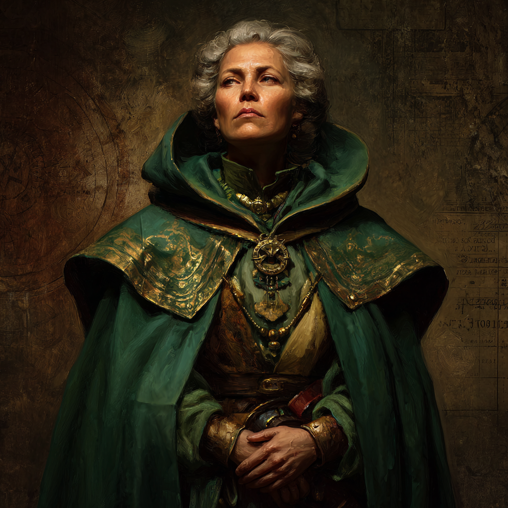 She has served the Defenders for many years as a quiet organising force. As second in command to Rilith Jol’gonas, Ermile oversees rites, manages correspondence between temples, and ensures that the practical workings of the faith function without interruption. Disputes are often resolved before they become public, and transitions are handled with care and discretion. Among the senior clergy she is widely trusted, known for her reliability and her unshakable sense of responsibility.