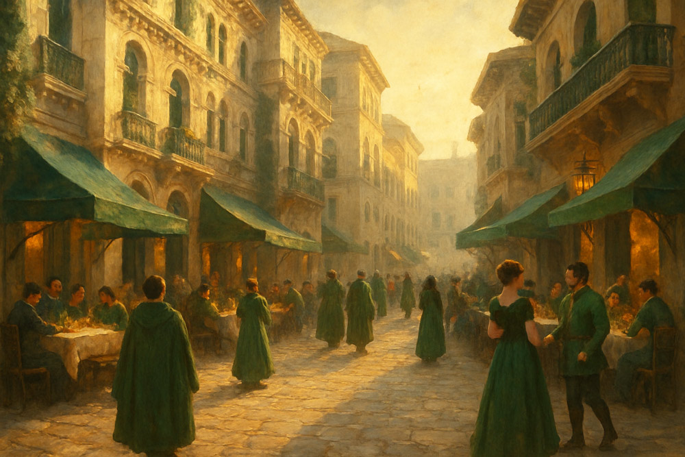 The Restaurant Quarter is one of the crown jewels of Aranthaes, a district where fine dining, luxurious inns, and refined indulgence define every cobbled street. Grand stone facades rise above the boulevards, carved with intricate reliefs and adorned with balconies where diners sip wine while overlooking the bustle below.
